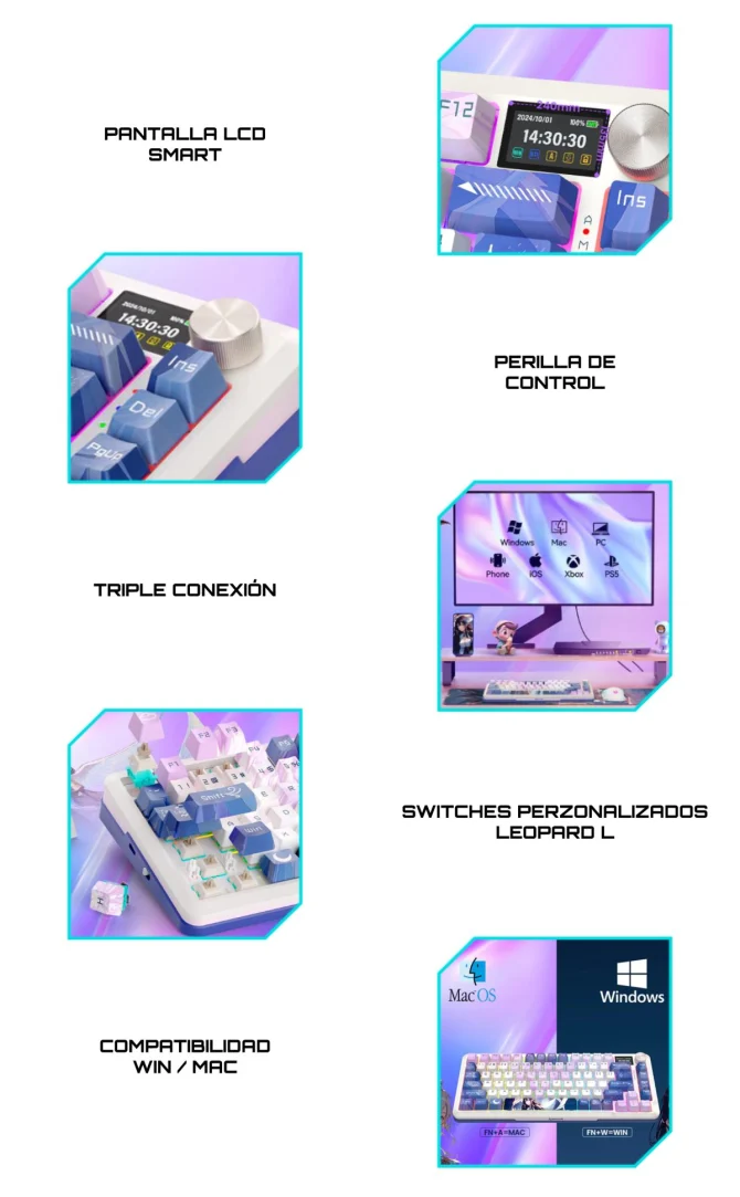 TECLADO MECANICO REDRAGON FLEKACT PRO RGB INALAMBRICO BT US (SW-LEOPARD) ANIME ANIME